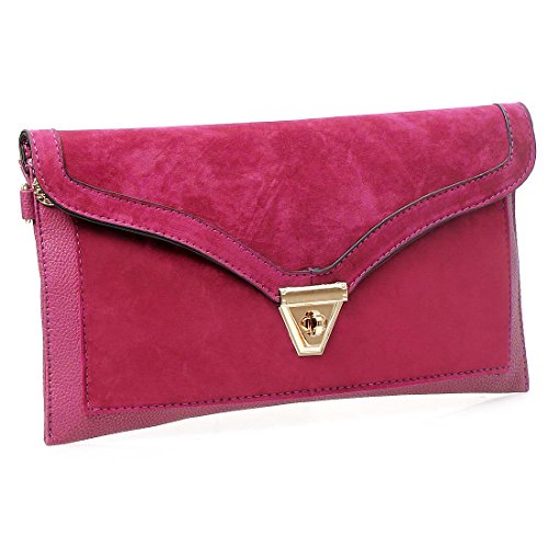 Best Seller! BMC Womens Fuchsia Pink Textured PU Faux Leather Suede Topped Envelope Flap Handbag Fashion Clutch Review