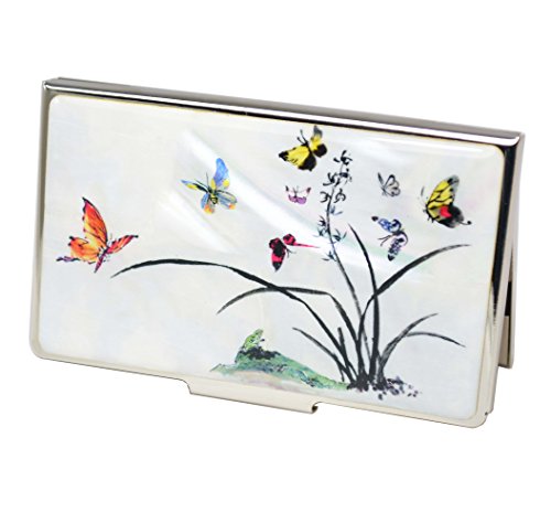 Mykoreangift offer Fancy business card case with natural pearly decorations. Design plants and butterflies on bright white background. This awesome product currently limited units, you can buy it now for £12.79, You save -