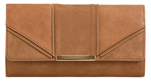 Best Seller! Girly HandBags Gorgeous Faux Leather Clutch Bag Zipped Design Suede Insertion Evening Bag (Tan) Review