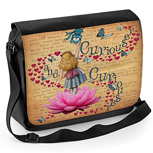 Krafy Gifts offer Mad Hatter Alice in Wonderland Curiouser AW03 Vintage School College Shoulder Messenger Bag Gift. This awesome product currently limited units, you can buy it now for £14.99, You save -