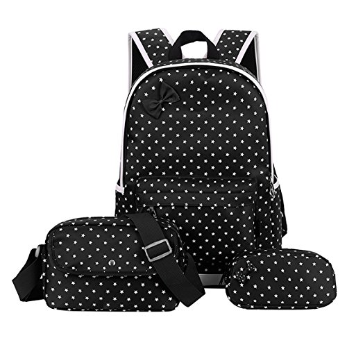 moonwind offer Moonwind Polka Dot 3pcs Kids Book Bag School Backpack Handbag Purse Girls Teen (Star-Black). This awesome product currently limited units, you can buy it now for £23.99, You save -